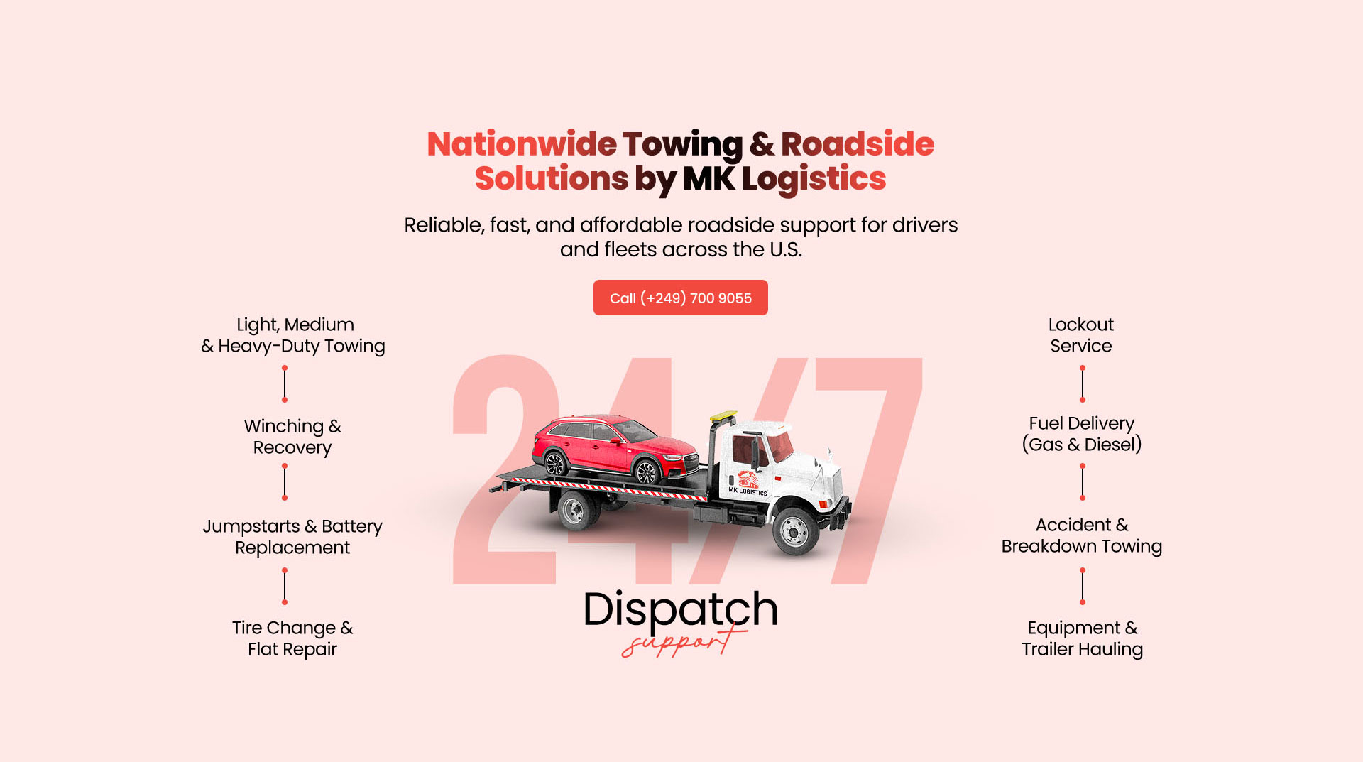 We’re more than dispatchers — MK Logistics now provides nationwide towing and roadside assistance for drivers and fleets.